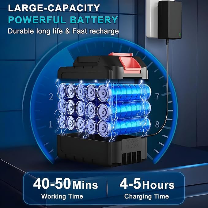 Dual 12000 mAh Battery: Provides extended run time for bigger jobs.