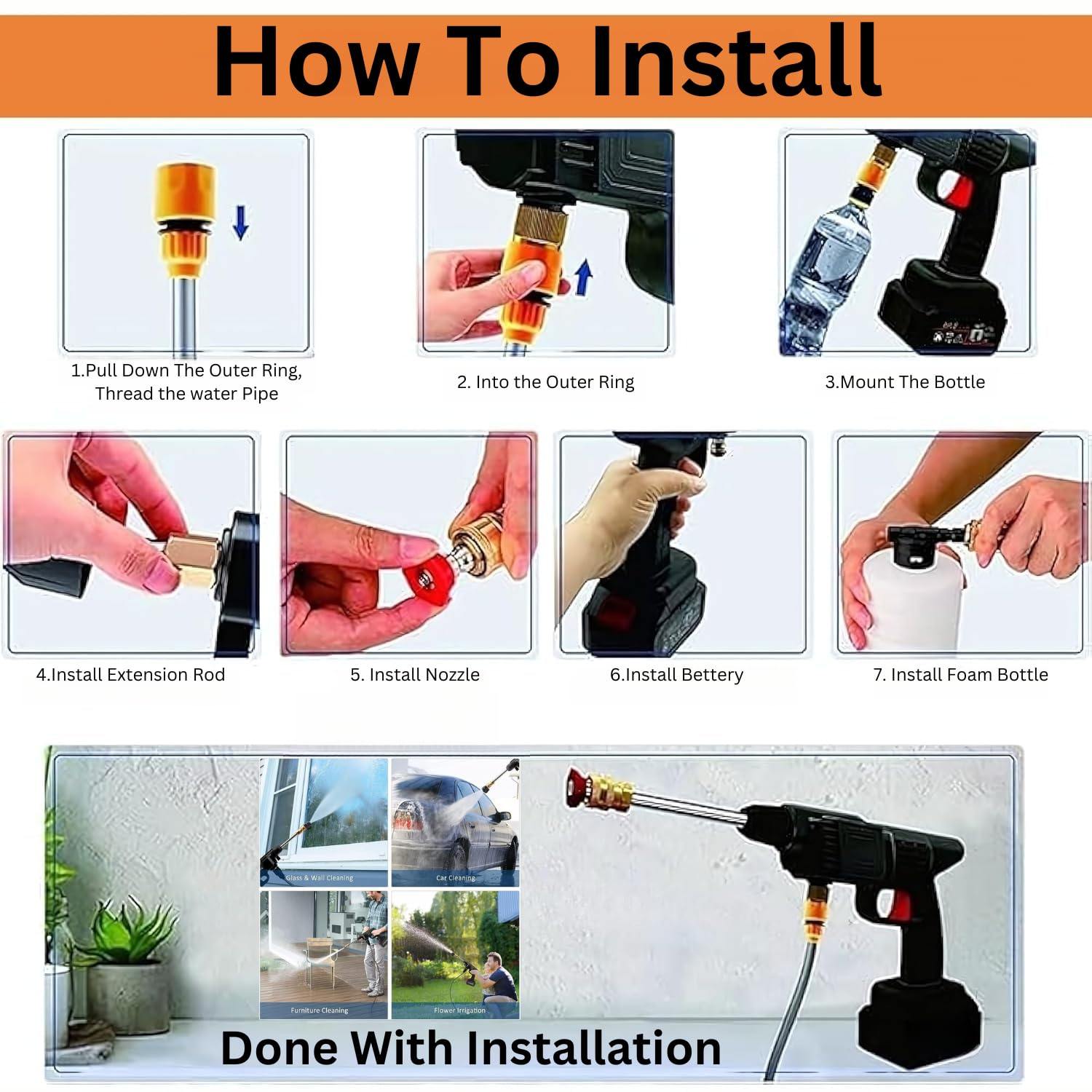 Includes Foam Cannon: Creates a rich foam for effective car and bike washing.