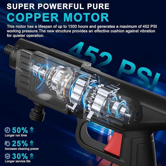 The pressure washer features an innovative adjustable 3-in-1 nozzle that lets you switch between a powerful jet, a gentle fan, and a wide spray pattern for any cleaning task. It comes with a 5-meter hose pipe for extended reach and a foam cannon to create a thick lather for a professional-grade car wash. Its lightweight and ergonomic design make it easy to handle and operate. Get powerful cleaning performance without the hassle of a traditional pressure washer.