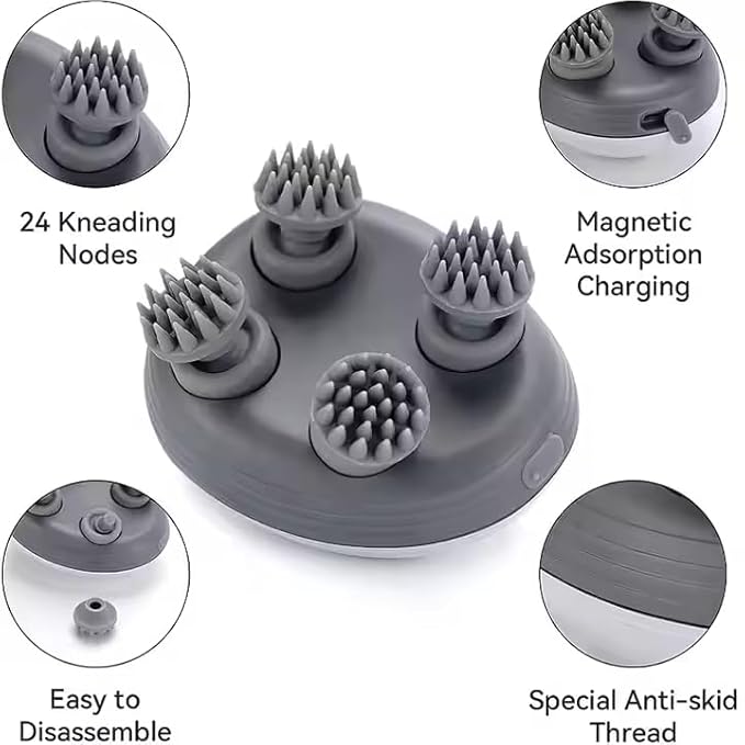 Cordless & Rechargeable: Equipped with a long-lasting rechargeable battery, offering full freedom of movement. Enjoy a soothing scalp massage anywhere—in bed, at your desk, or while traveling—without being tied to an outlet.