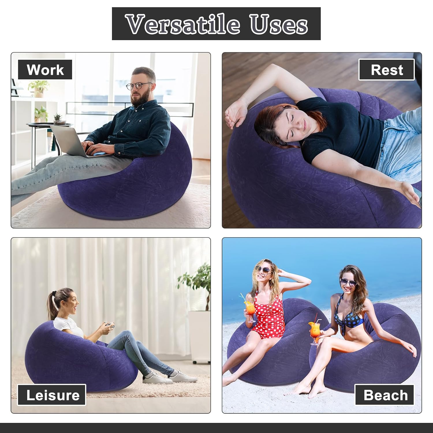 Made from durable, high-quality, and puncture-resistant material, this chair is built for both indoor and outdoor use. It inflates quickly and effortlessly and, when deflated, folds down into a small, lightweight package, making it incredibly portable and easy to store or carry for camping, picnics, or moving between rooms. Enjoy the ergonomic design that conforms to your body, giving you a customized and deeply relaxing seating experience.