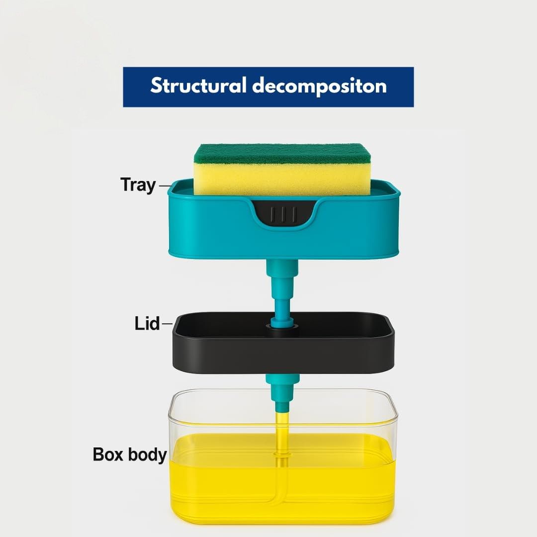 Streamline your kitchen or bathroom sink with this convenient 2-in-1 soap dispenser. This smart accessory combines a liquid soap dispenser and a dedicated sponge holder in a single, compact unit, helping you save valuable countertop space and keep your sink area tidy. The easy-to-use pump dispenses your favorite hand soap or dishwashing liquid with a simple press, and the built-in holder keeps your sponge or scrubber dry and within easy reach.