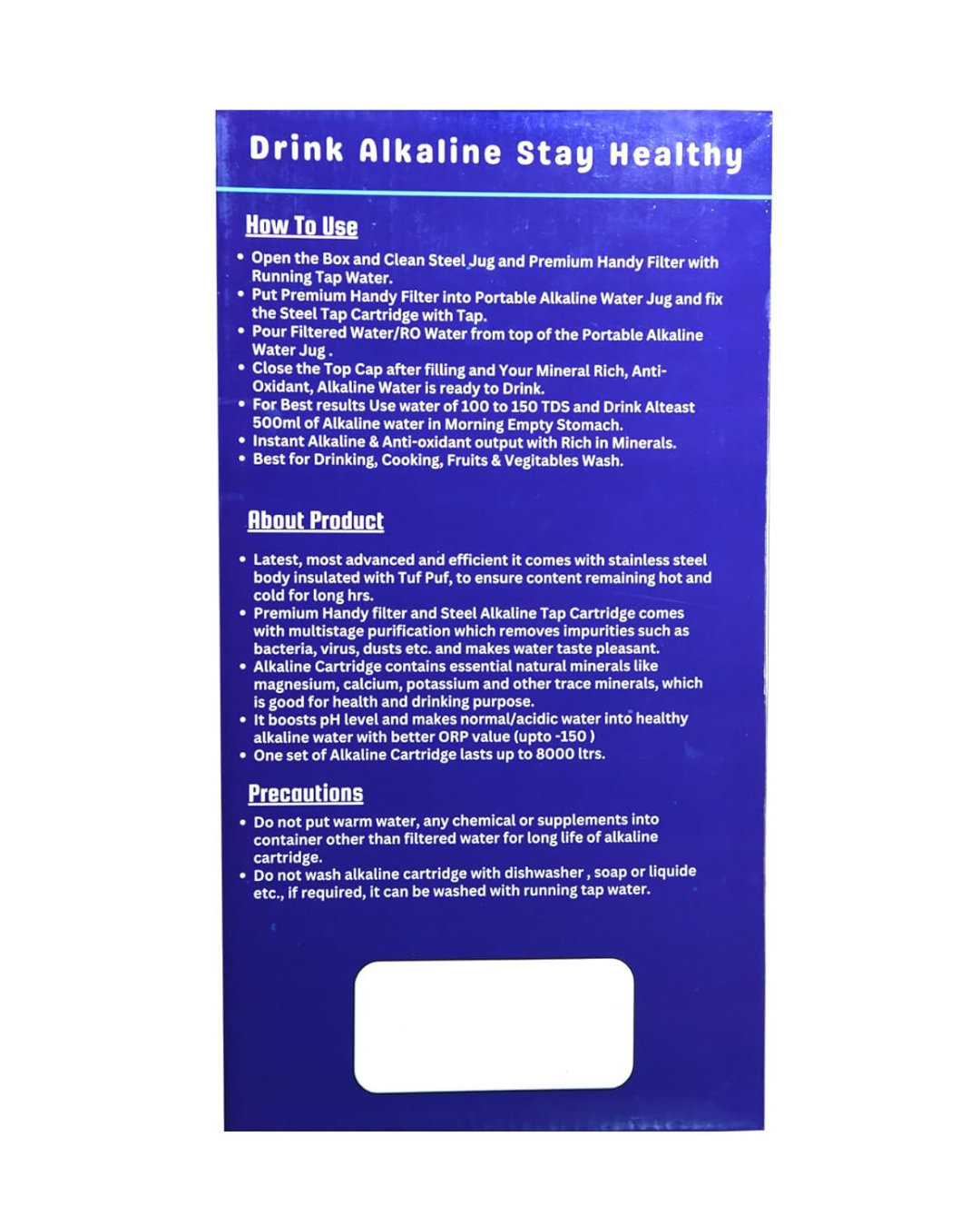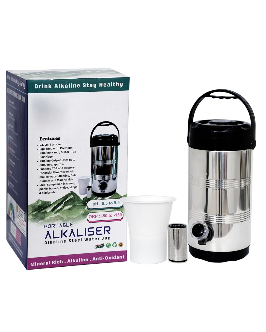 Elevate your hydration with the Portable Stainless Steel Alkaline Water Dispenser, a versatile thermosteel jar designed to create alkaline water on the go. This 2.5-liter capacity alkalizer is perfect for your kitchen, office, or travel needs, providing you with healthier, mineral-rich water throughout your day. Crafted from durable PU insulated thermosteel, it ensures your water stays at its desired temperature while the easy-to-carry handle offers ultimate portability.